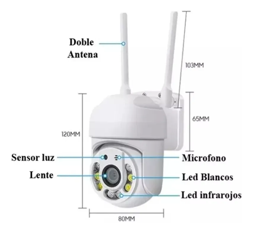 Cámara de seguridad PTZ (Pan-Tilt-Zoom) es la opción ideal de vigilancia ya que cuenta con tres funciones principales, visión Panorámica, inclinación y Zoom. Cuenta con funciones avanzadas de monitoreo. Ofrece visión nocturna, luz, detección, seguimiento de movimiento y conectividad inalámbrica. Capaz de girar 350° y hacer zoom . Proporciona alta resolución (1080p) y control remoto desde dispositivos móviles. Utiliza app V380Pro y te permite guardar tus grabaciones en la smart cloud o tarjeta Micro TF. De forma remota podrás hablar y escuchar lo que sucede en tu hogar o negocio gracias a su audio bidireccional y micrófono incorporado.