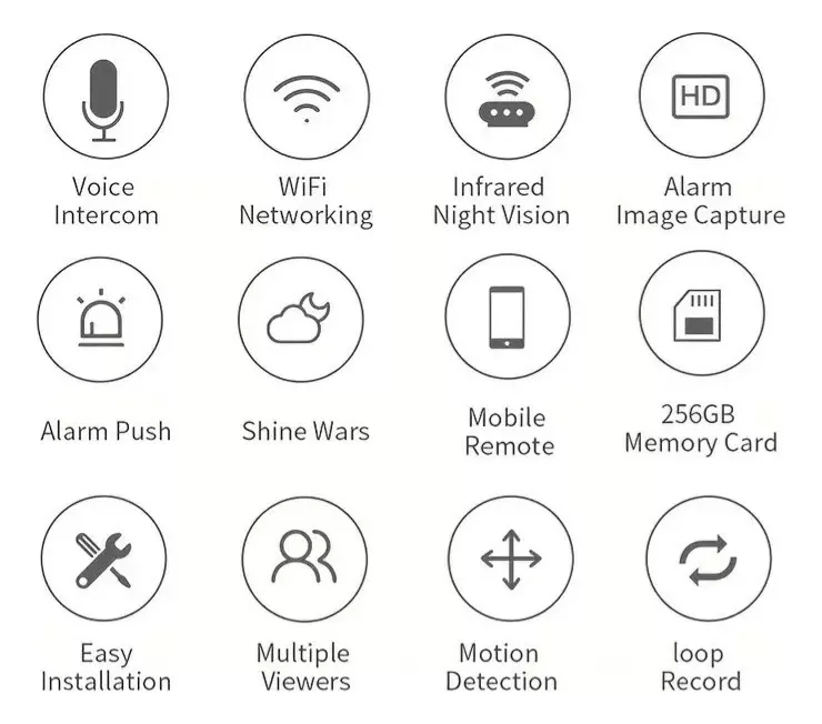 Característica: Visión nocturna. Interruptor IR-CUT Automático, alrededor de 5-8 metros (varía según el entorno) El LED blanco se puede controlar a distancia a través de la aplicación: (1) Encender (2) Apagar (3) Auto (en modo automático, la luz infrarroja se encenderá después del interruptor de corte IR a la visión nocturna automáticamente, puede detectar inteligentemente el cuerpo humano y encender / apagar la luz blanca de manera inteligente)